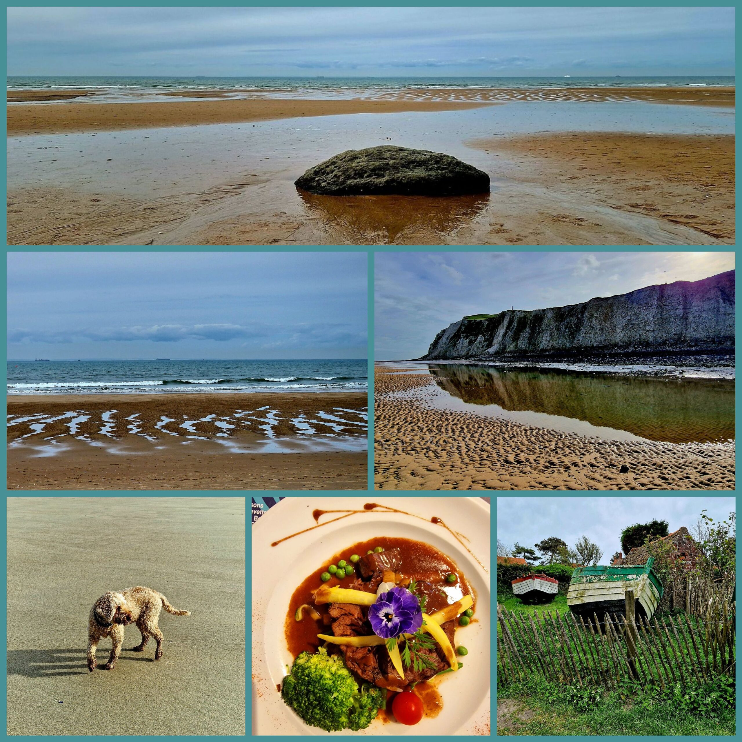 Endlich ging es dann doch los Richtung Frankreich zu unserem vertrauten Campingplatz in Escalles. Hier fiel Herrchen dann als erstes ein, dass er vergessen hatte, das Fährticket auszudrucken. Gott sei Dank ging das auf dem Campingplatz. Entwarnung! Dann erst mal Strand und durchatmen. Abends französische Küche im Restaurant: Fondant de Boeuf und Moules Frites. Für mich mal wieder nur Pommes. Halten die mich für eine verkappte Vegetarierin? Die spinnen!