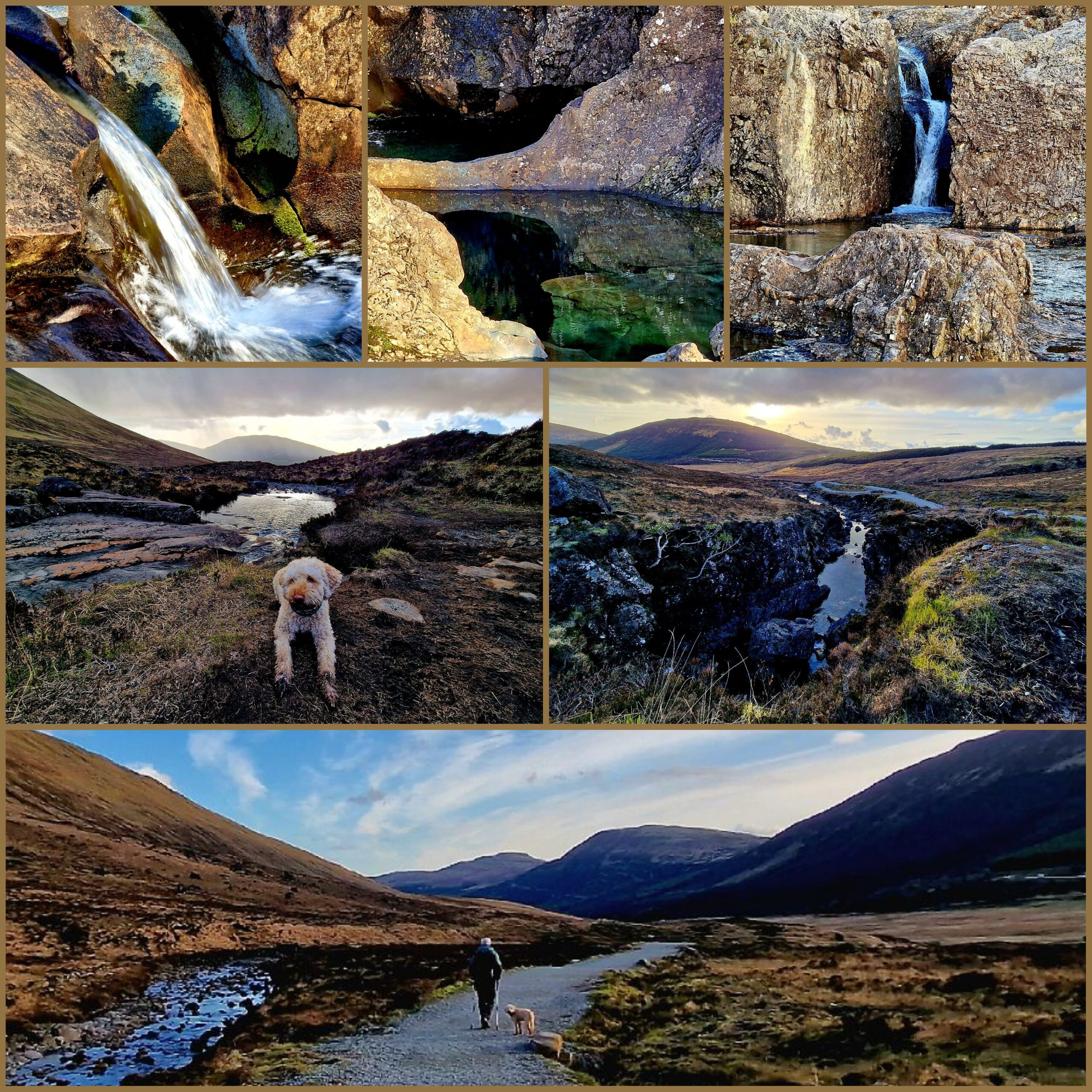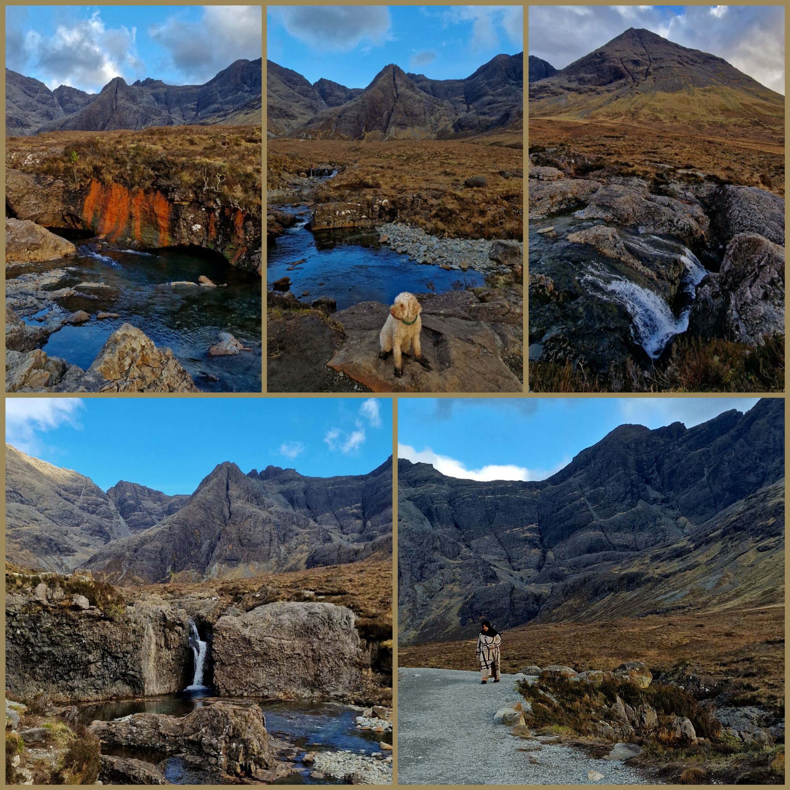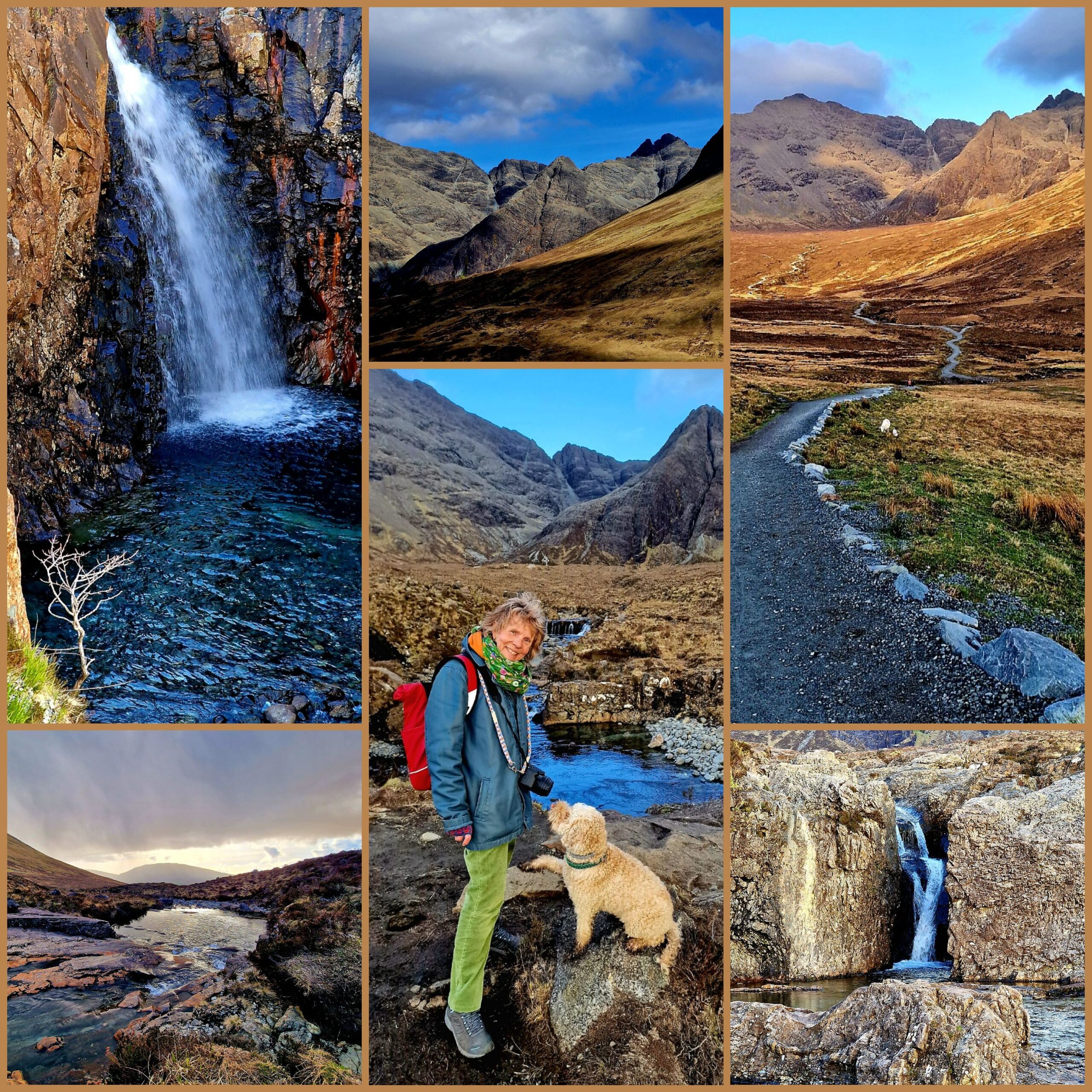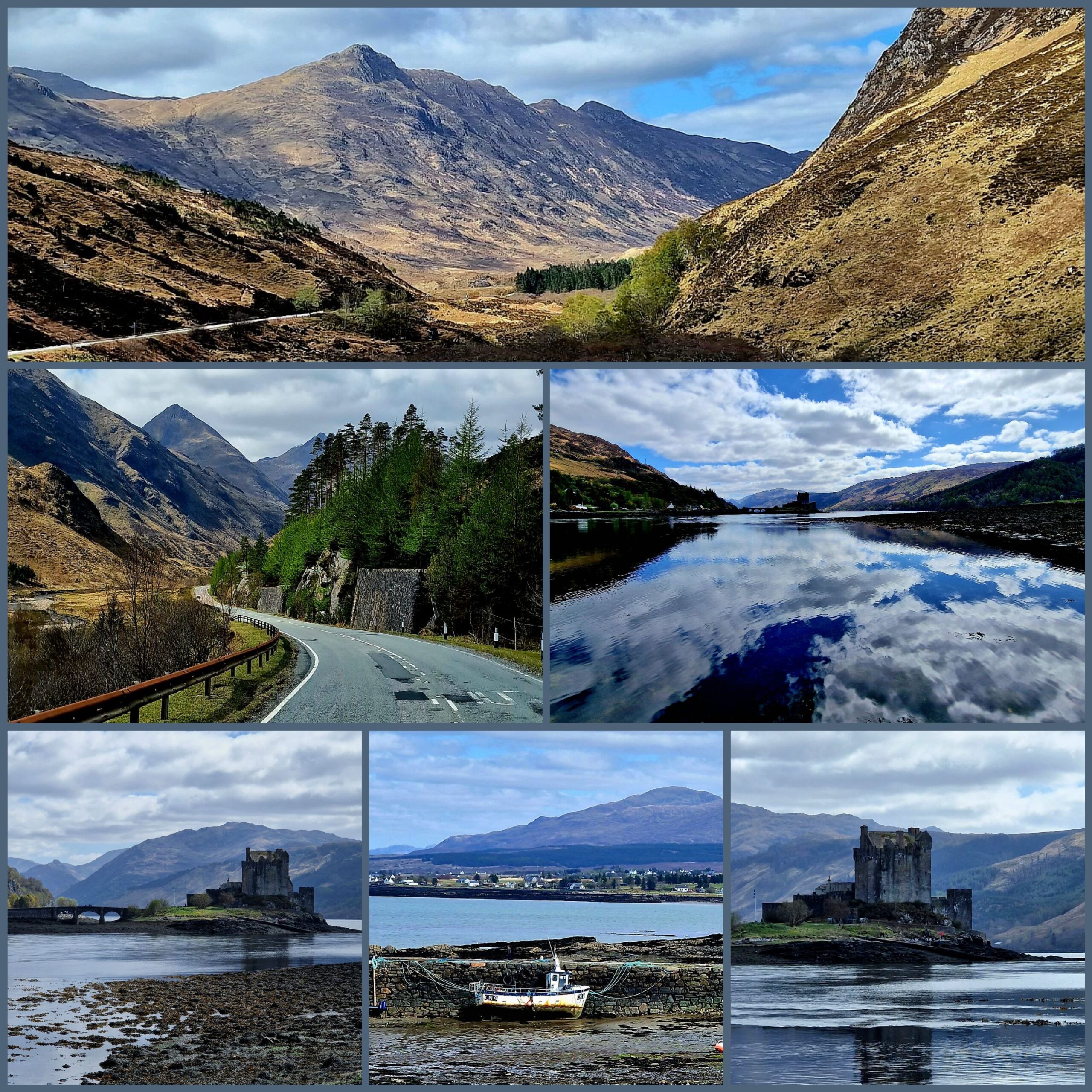 Mit Hilfe innerlicher und äußerlicher Anwendungen: Whisky, Ibuprofen, Kühlen, Traumeel, Arnika-Schmerzgel, Frauchens Armbandage als Kniebandage usw. war das Knie wieder reisefähig. Am nächsten Morgen ging es dann Richtung Isle of Skye mit Halt an dem berühmten Eilean Donan Castle. Von der Fahrt dorthin hier schon ein paar Bilder.