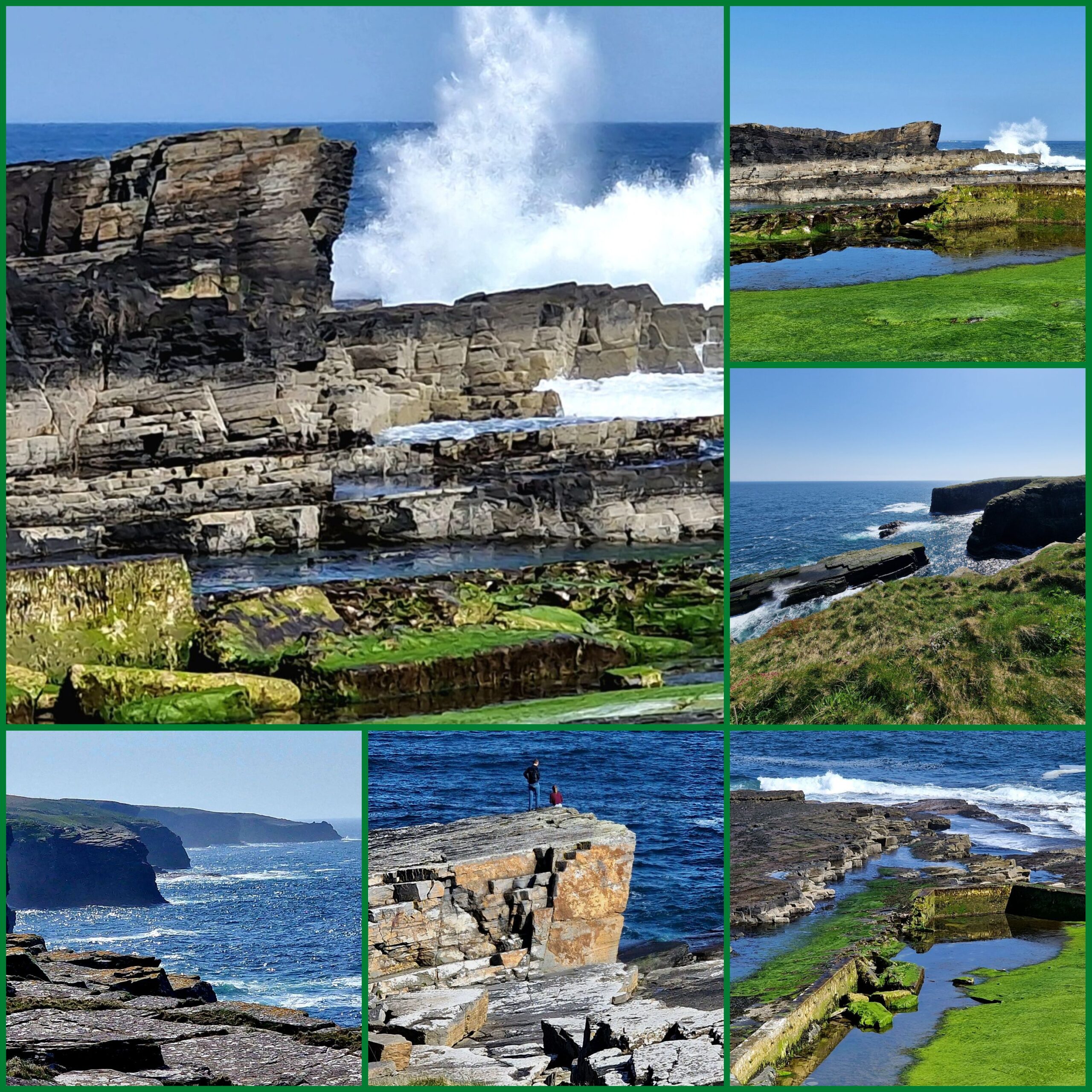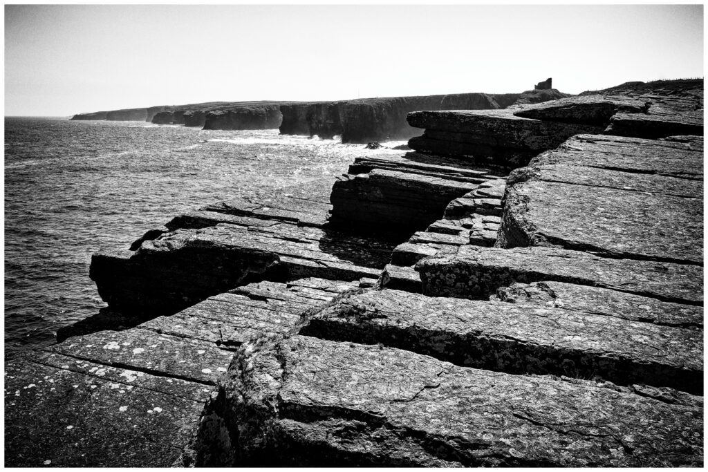 Der Küstenweg zur Burg war großartig, mit vielen atemberaubenden Aussichten. Die Brandung schlug an bizarren Felsformationen hoch und die Felsplatten bildeten großartige Szenerien. Bildredakteurin hat jede Menge Fotos gemacht. Bei Felsen ist sie ja generell nicht zu halten. Ins Wasser durfte ich nicht, aber so wie es dort toste, hatte ich auch keine Lust dazu. Dafür sind wir ziemlich viel auf den Felsen herumgekraxelt, hin und her, rauf und runter.