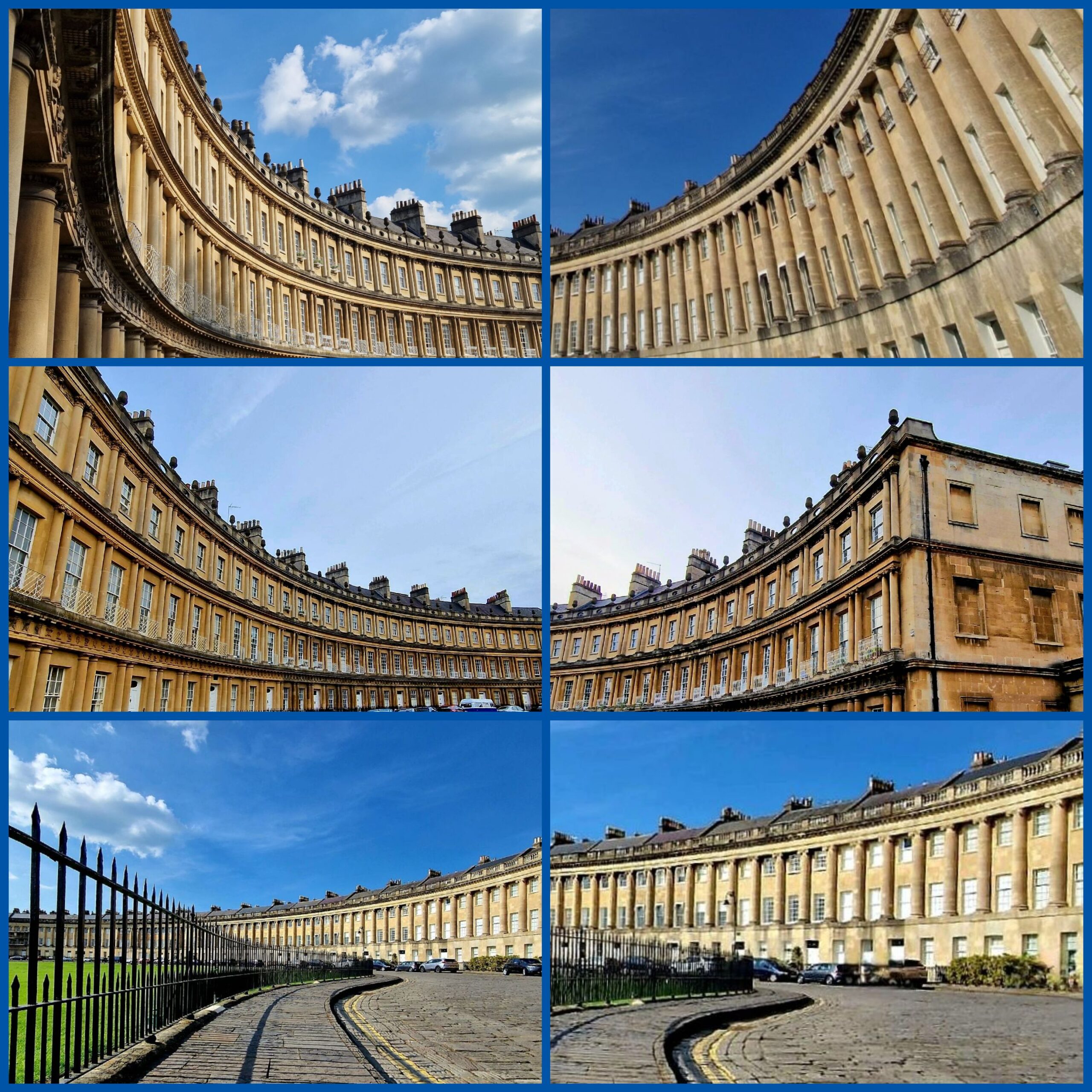 Wir sind weiter durch die Stadt geschlendert und haben uns zwei der berühmtesten Gebäudekomplexe von Bath angesehen, The Circle und Royal Crescent. Beides Reihenhaussiedlungen, bei denen sie bei der Fassadengestaltung soviel Gas gegeben haben, dass sie es spielend mit jedem Schloss aufnehmen können.
