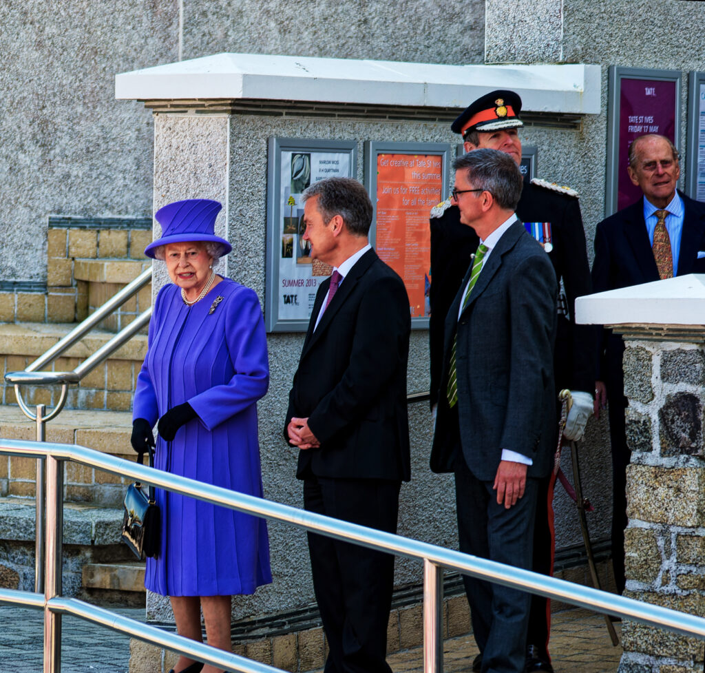 Wir sind dann nach unten in den Ort gelaufen und was soll ich euch sagen: es war ein rauschender Empfang! Begeisterte Engländerinnen und Engländer säumten die Straßen, ganze Schulklassen standen zu meiner Begrüßung bereit und schwenkten Fähnchen. Ich war gerührt. Aber dann kam die schreckliche Wahrheit heraus: die kamen gar nicht wegen mir, sondern wegen der Queen. Die kam nach Saint Ives, um dort ein blödes Rettungsboot einzuweihen und die dortige Tate Gallery zu besuchen.