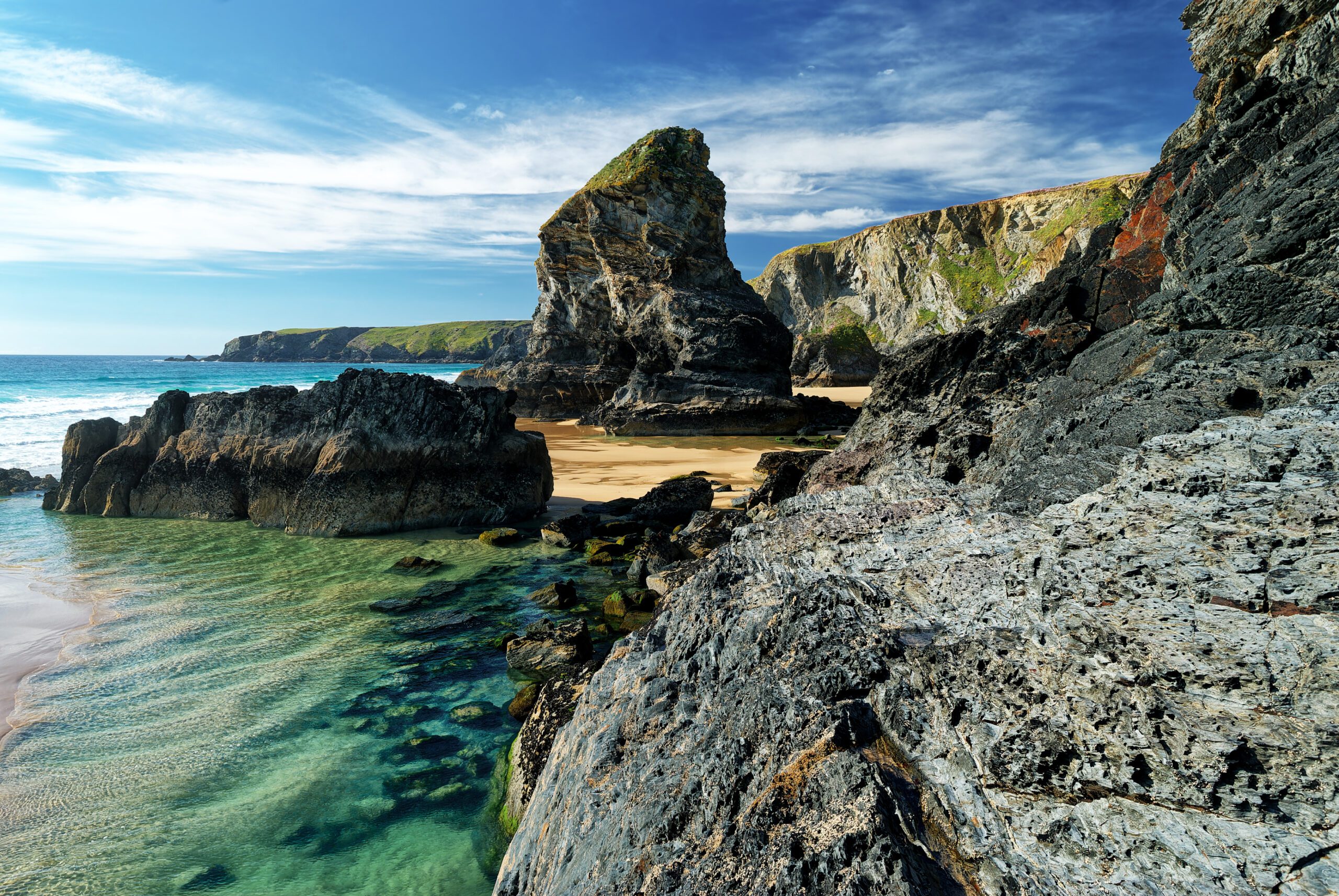 Von Port Isaac aus sind wir auch zu den Bedruthan Steps und zum Bodmin Moor gefahren. Beides sehr nett, aber mir hat der Strand bei den Bedruthan Steps am besten gefallen. So muss ein Strand sein: Felsen und jede Menge Sand zum Herumlaufen. Es war so schön, dass wir am nächsten Tag gleich wieder hin gefahren sind. Und da haben dann die beiden die Bedeutung von Ebbe und Flut erstmals richtig wahrgenommen: der Strand war weg!