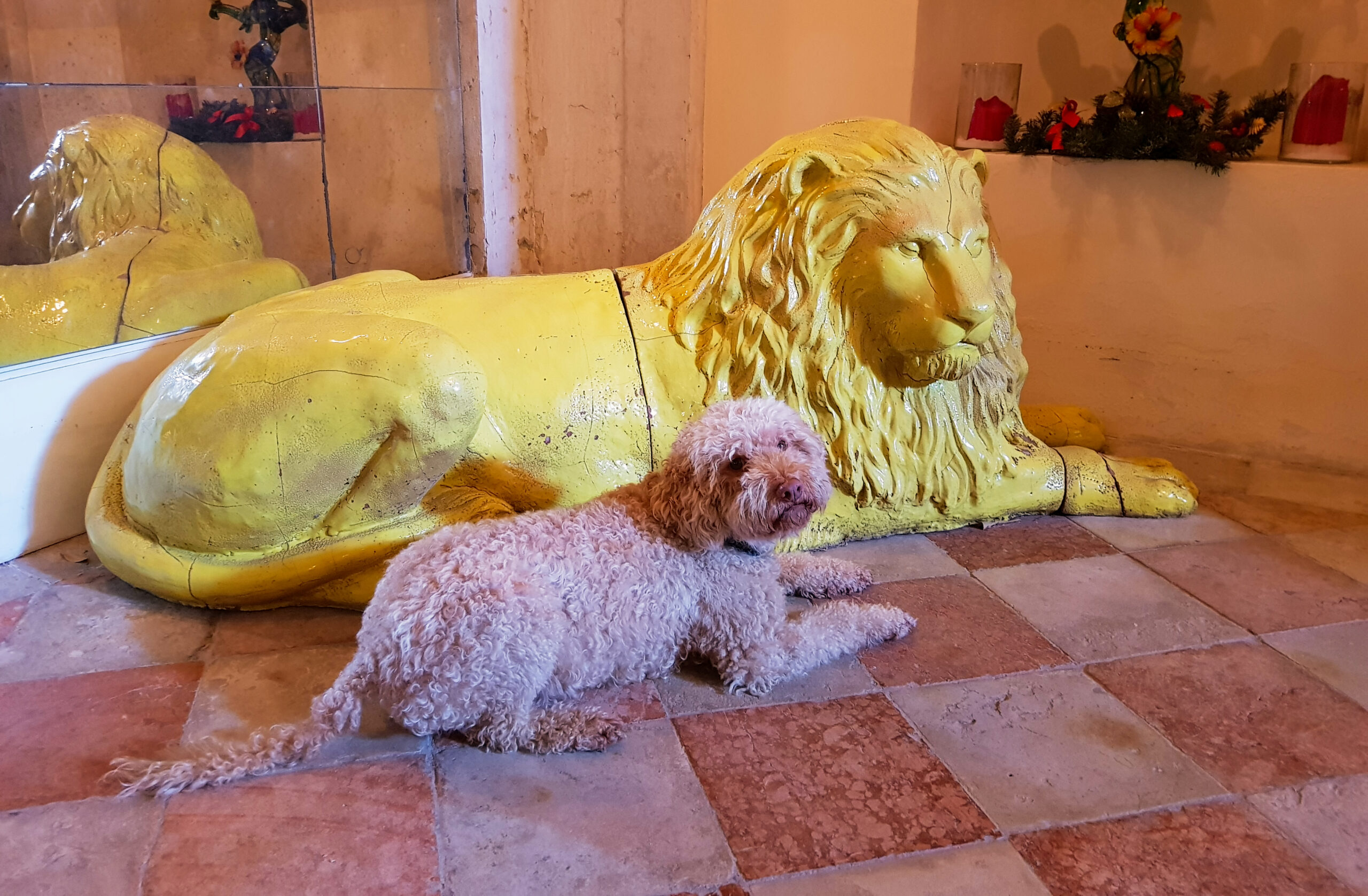 Mit dem merkwürdigerweise zitronengelben Löwen habe ich mich ohne große Worte gut verstanden. Der wohnt im Palazzo Contarini. Fesch! Der Eigentümer des Palazzo heißt wohl San Marco. Herrchen hat jedenfalls gesagt, dass das der Löwe von San Marco ist. Der war aber nicht zu Hause, der San Marco.