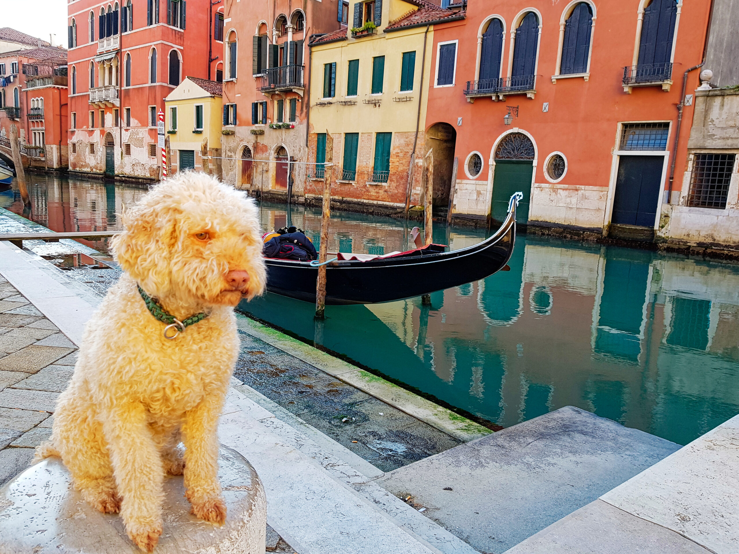 Dass Frauchen nicht seefest ist, wissen wir ja schon, seit es ihr bei der Überfahrt nach Sardinien schlecht geworden ist. Aber nicht mal kanalfest? Beim Rudern in der Gondel wäre sie mir da auch keine Hilfe.