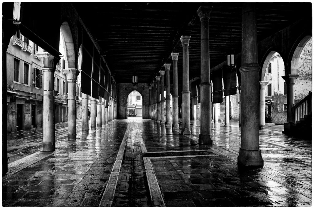 Auf dem Weg zum Fischmarkt war dann tatsächlich an einem Platz Land unter, Aqua Alta!